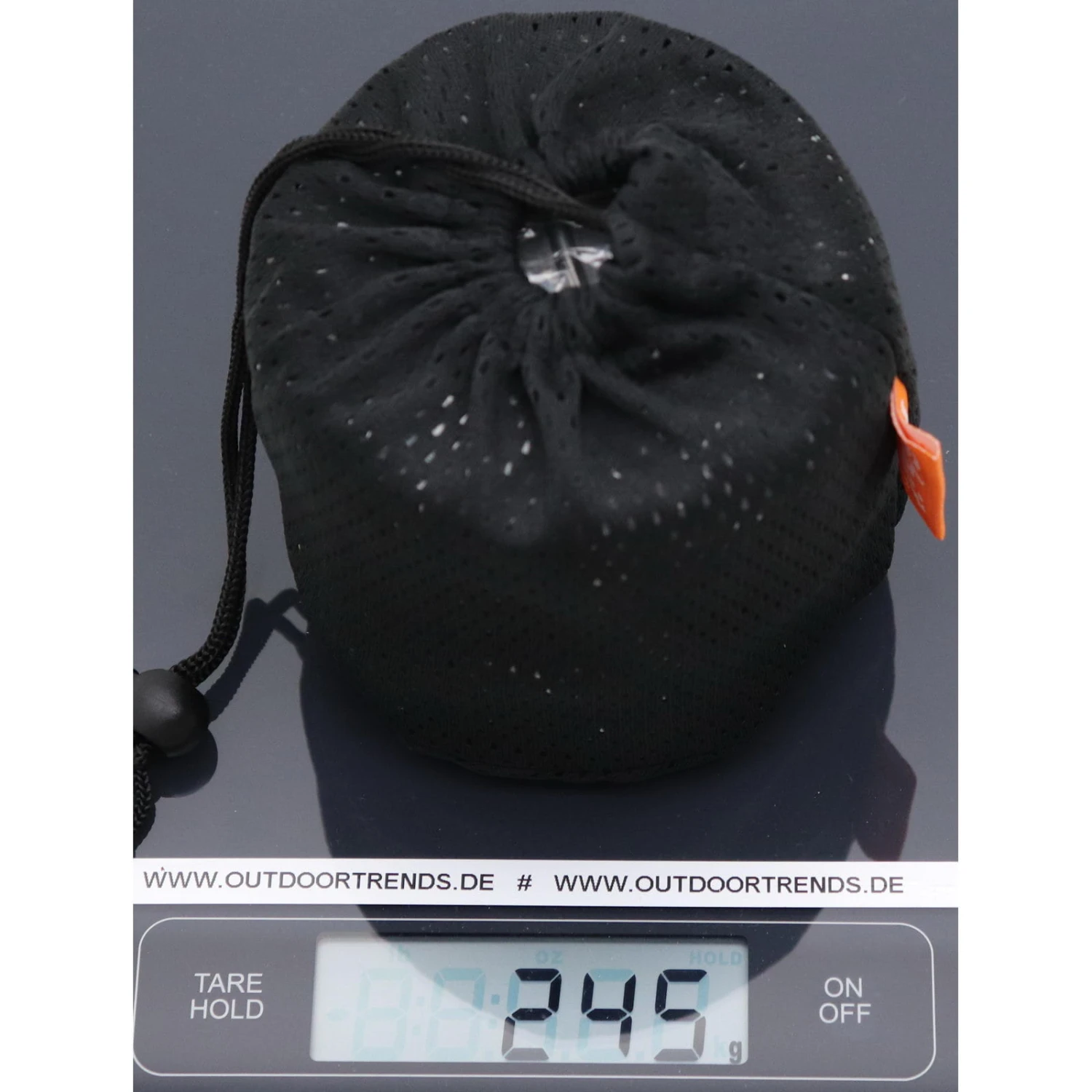 Wenn Gewicht eine Rolle spielt, ist dieses Kochset die richtige Wahl. Etwa 245 g leicht (inkl. Packnetz), aus hart anodisiertem Aluminium und mit Esbit Trockenbrennstoff ganz einfach zu befeuern. Der Topf fasst ca. 585 ml, zum Lieferumfang gehören auch der Deckel sowie ein Stand, der sich platzsparend im Topf verstauen lässt. Der Topf hat eine Volumenanzeige in Oz und Liter, die Edelstahlgriffe sind platzsparend klappbar. Mit praktischem Netzbeutel.