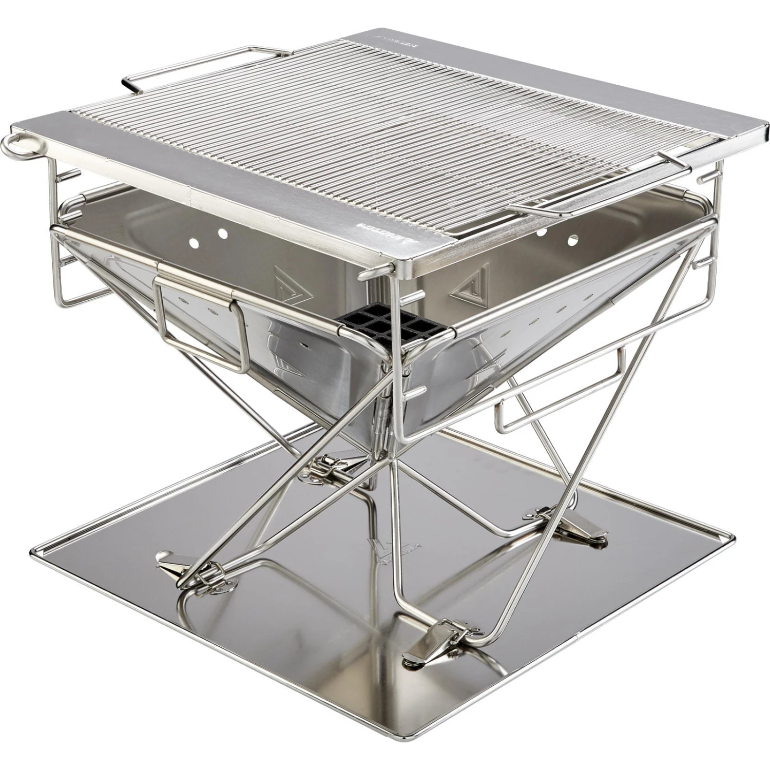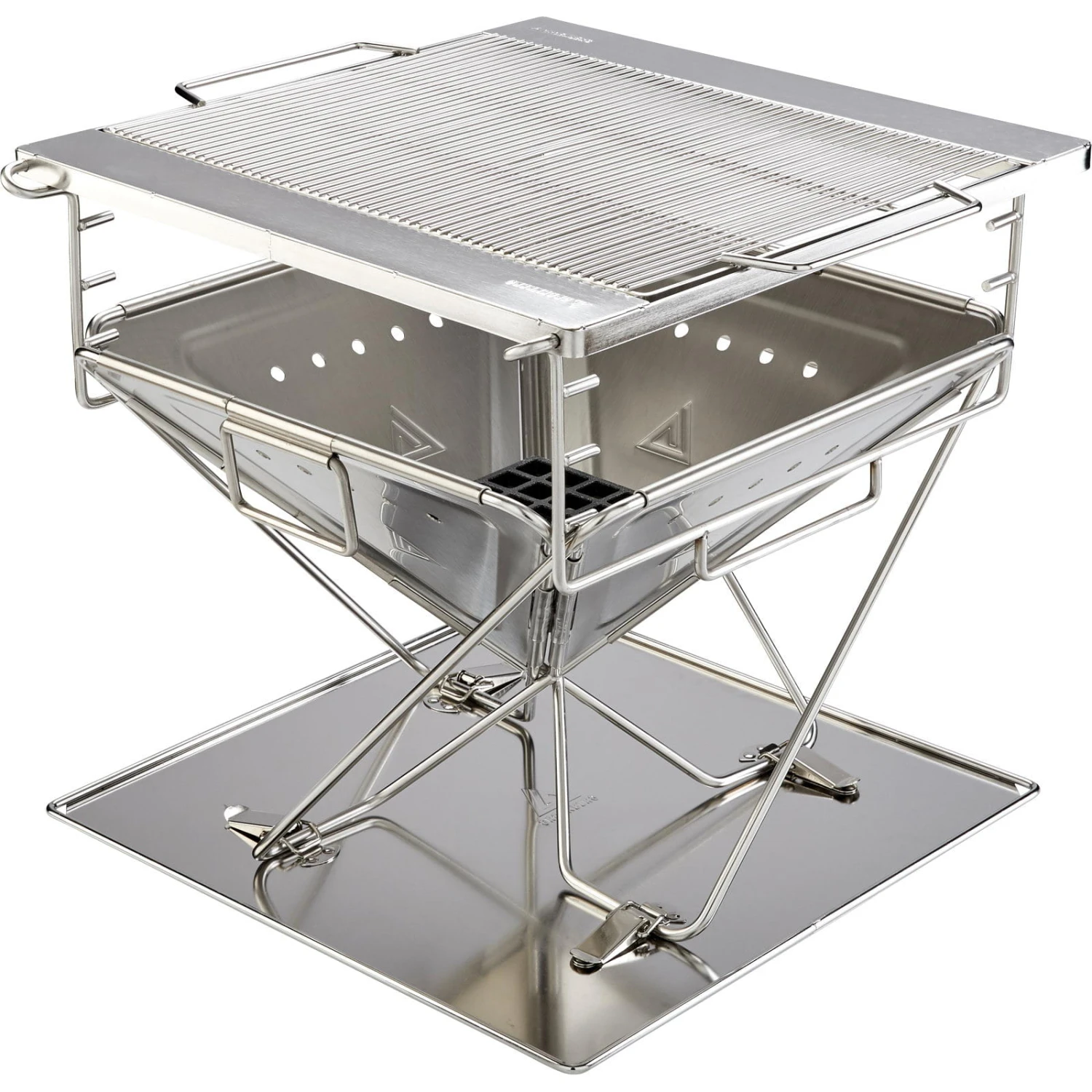 Der KATLA GRILL L von GROENBERG ist ein stabiler Grill mit zahlreichen Features. Öffnungen im oberen Bereich der Feuerschale verhindern die Verwindung des Materials, während Spalten an den Scharnieren eine perfekte Belüftung gewährleisten. Um zu verhindern, dass Kohle auf den Boden fällt und den Grillplatz verschmutzt, ist der Grill mit einer Bodenplatte aus rostfreiem Edelstahl ausgestattet. Für optimale Kontrolle ist der Grillrost in drei Stufen höhenverstellbar. Inkl. robuster Transporttasche. Auch als Feuerschale verwendbar.