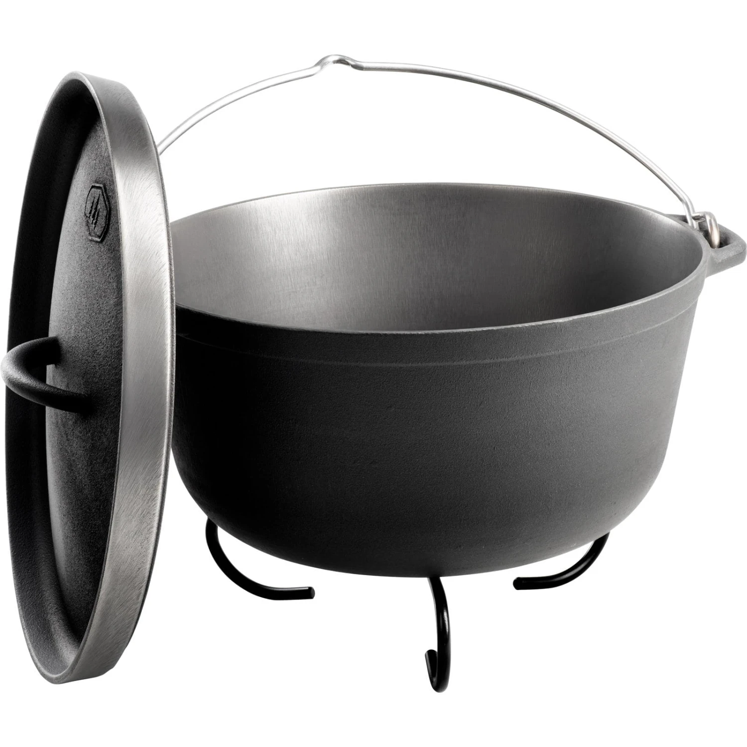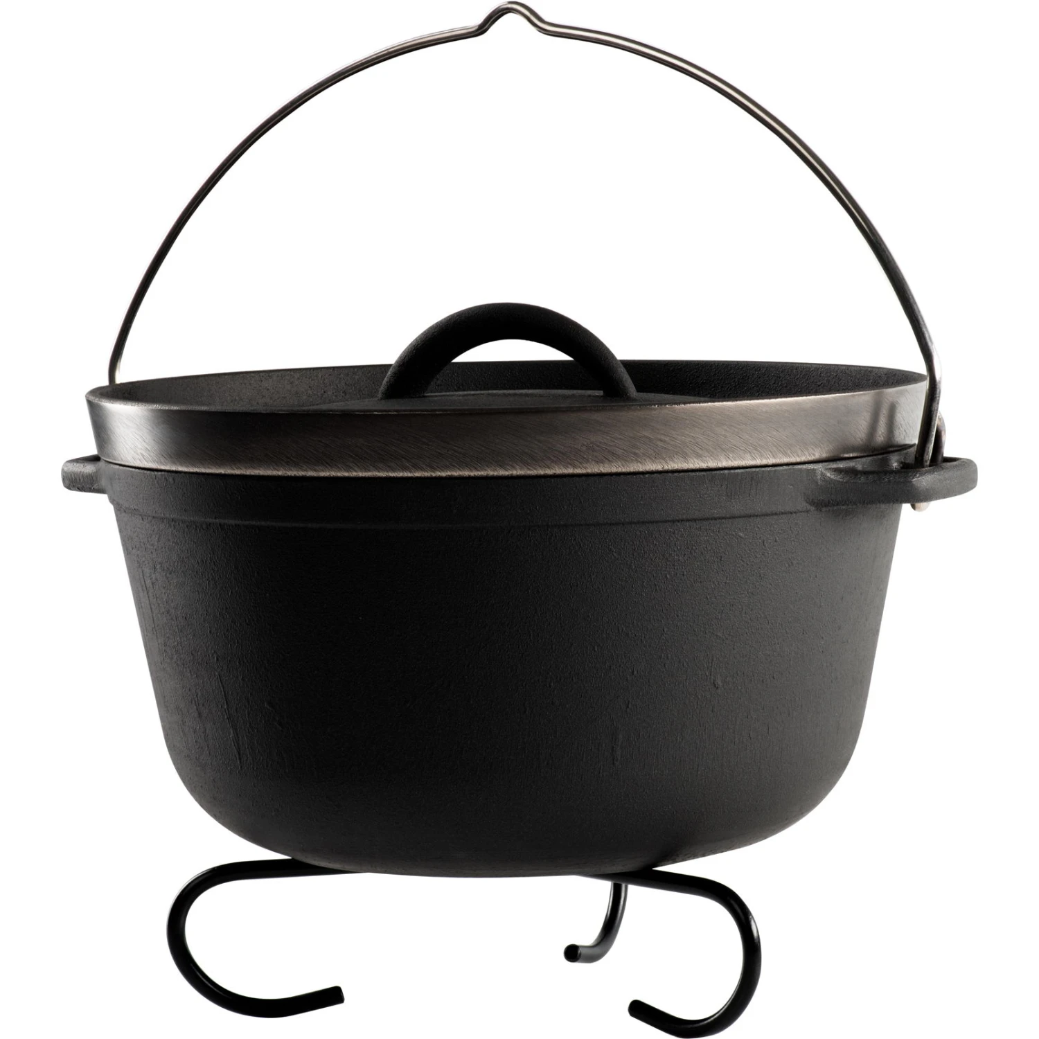Der LITECAST DUTCH OVEN 5 QT von GSI aus Gusseisen ist leichter als herkömmliche Feuertöpfe aus Gusseisen und bietet kompromisslose Kochleistung. Eine nitrierte Oberflächenbehandlung (Härten von Eisen) verhindert Korrosion im Innenbereich und auf der Deckelinnenseite. Der plane Boden funktioniert auf allen Kochflächen, vom Lagerfeuer bis zum Induktionsherd.