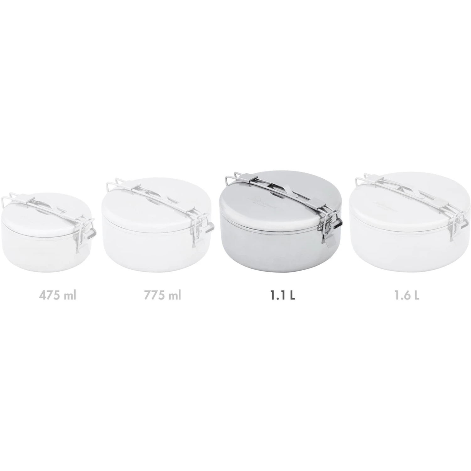 Der Alpine Stowaway Pot mit 1,1 Liter Fassungsvolumen von MSR. Der Edelstahltopf hält häufige Nutzung locker aus und stellt eine hochwertige, strapazierfähige Kochgeschirroption dar. Der leicht zu hebende Scharniergriff lässt sich über den passgenauen Deckel klappen, um diesen zu befestigen.