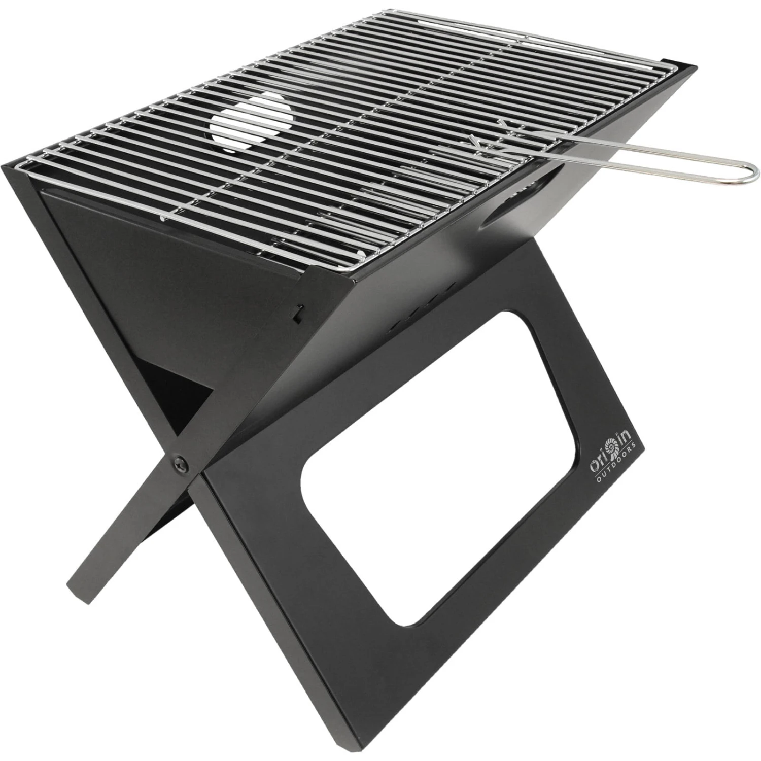 Mühelos und schnell aufzubauender BBQ Klappgrill von Origin Outdoors mit großer Grillfläche. Einfach den Grill aufklappen, die Seitenwände einhängen und den Kohle- und Grillrost einlegen. Im Handumdrehen kann das Grillvergnügen beginnen. Alternativ kann der Grill auch als Feuerschale verwendet werden. Durch die massive Bauweise ist er sehr robust und steht sehr stabil und die große Grillfläche bietet ausreichend Platz für Grillgut aller Art. Die Holzkohle wird durch den Kohlerost und die seitlichen Aussparungen am Grill ideal belüftet, sodass die heiße Glut nicht lange auf sich warten lässt. Mit dem mitgelieferten Grillrost-Heber lässt sich der Grillrost problemlos anheben, um Kohle nachzulegen. Die Tragetasche aus Nylon ist im Lieferumfang enthalten.