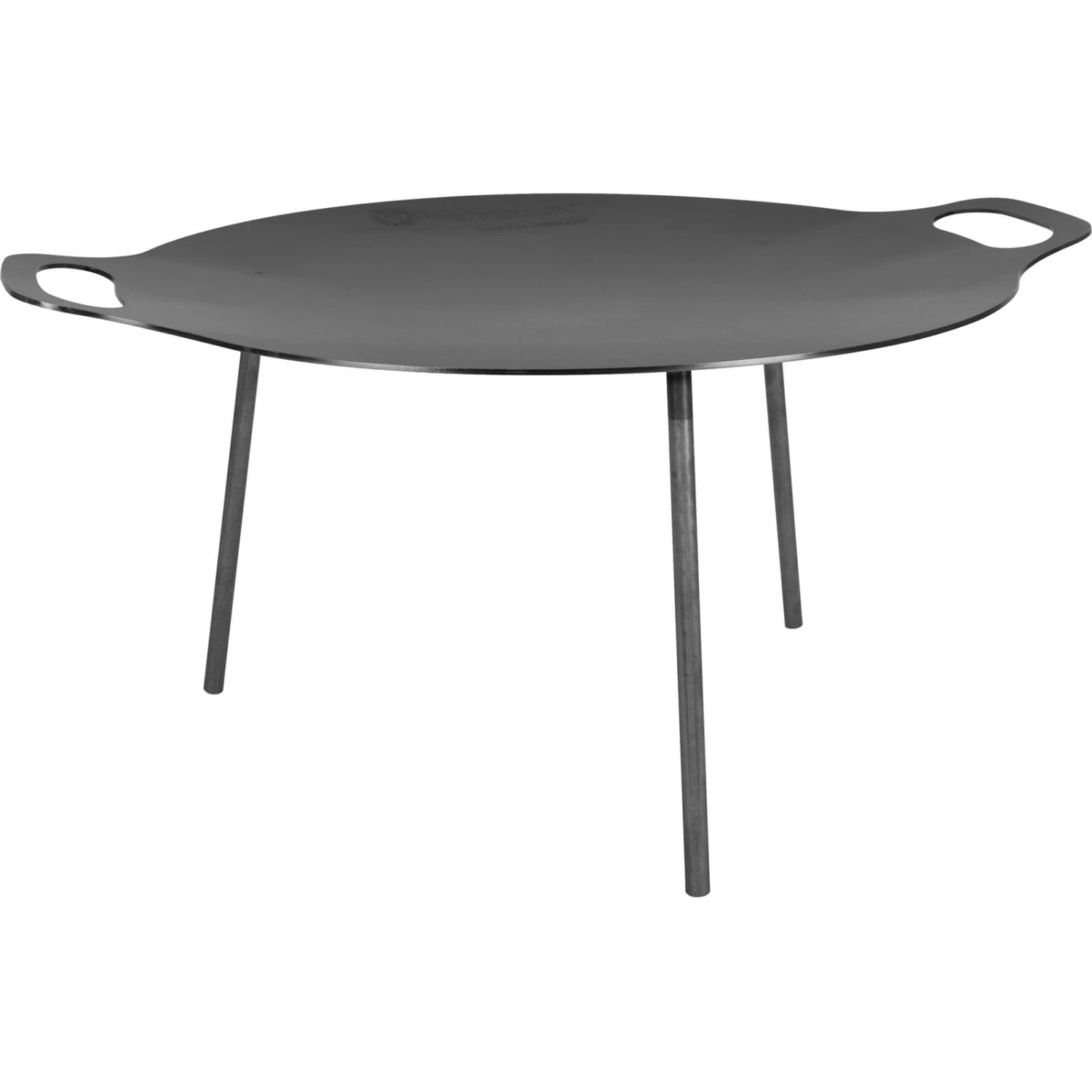 Die Grillpfanne und Feuerschale FS48 von Petromax ist ein Multitalent aus Stahl. Entweder stellt man die Grillschale mit ihren drei Standbeinen über das offene Feuer, um leckeres Essen zuzubereiten oder man entfacht ein Lagerfeuer in der Schale, um den darunterliegenden Boden unversehrt zu lassen. Der Clou ist das die Schale in der Mitte heißer wird als am äußeren Rand, somit kann z.B. ein saftiges Stück Fleisch am Rand nachgaren, während in der Mitte noch das Gemüse brutzelt. Bei jedem Brat- und Brennvorgang baut sich eine Patina auf, die für einen natürlichen Antihafteffekt sorgt. Zusätzlich kann die Grillschale fs48 ohne ihre Standbeine auf einem Atago verwendet werden.