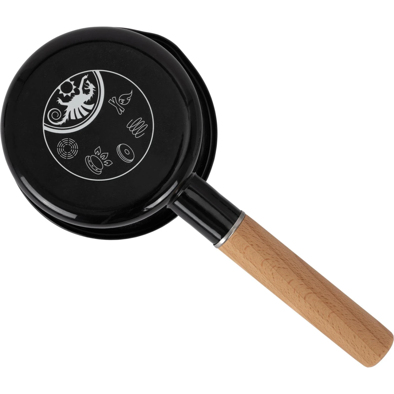 Der Panen von Petromax mit 0,5 Liter Fassungsvermögen ist ein Emaille Stieltopf mit dem das Kochen nicht nur einen nostalgischen Charakter bekommt, sondern es auch noch leicht von der Hand geht. Die robuste Kochausrüstung aus Emaille ist durch ihr geringes Eigengewicht ein idealer Begleiter, ob bei Streifzügen durch die Natur oder beim Campen. Der Holzstiel dient dabei als ein natürlicher Hitzeschutz und ermöglicht das Hantieren über dem Feuer. Die Oberfläche ist kratzfest und lässt sich mühelos reinigen. Mit dem Emaille Stieltopf hat man ein Kochgeschirr an der Seite, dass den Ansprüchen an eine unkomplizierte Handhabung und Pflege in vollem Umfang erfüllt. Der Panen 0.5 besitzt eine Innenskalierung und ist für alle Herdarten und das offene Feuer geeignet.